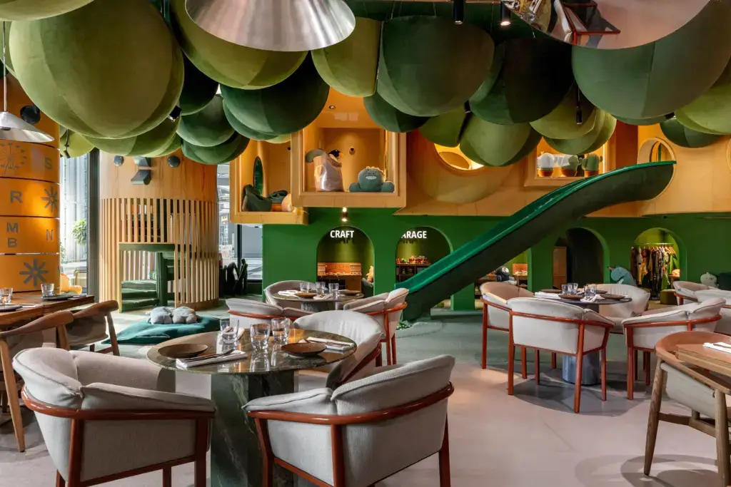The brand places particular care on supporting mothers. It’s a judgment-free environment where arriving with children of different ages feels easy and natural. Designed with calm aesthetics, natural materials, and open layouts, Ribambelle feels more like a Michelin-aspired, relaxed retreat than a typical children’s venue.